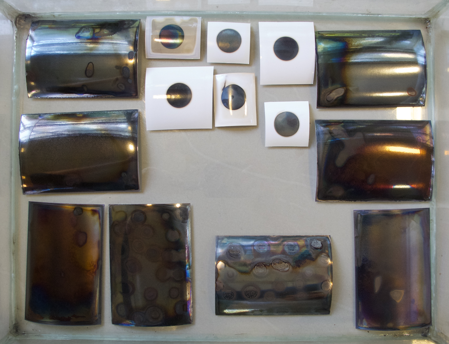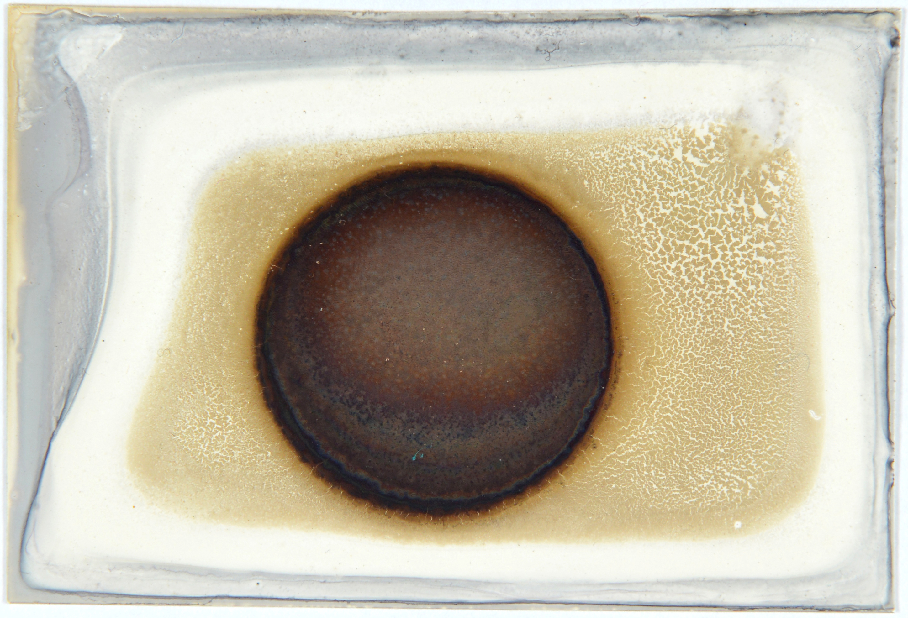 Through experimentation I have deliberately tried to provoke silver to the surface by polluting black-and-white photographic paper. These have been placed in customised containers where they have been exposed to fumes from certain selected chemicals. Furthermore, the paper has been kept in very moist and warm environments. So far the project consists of a lot of experiments. Some showing more silver than others.