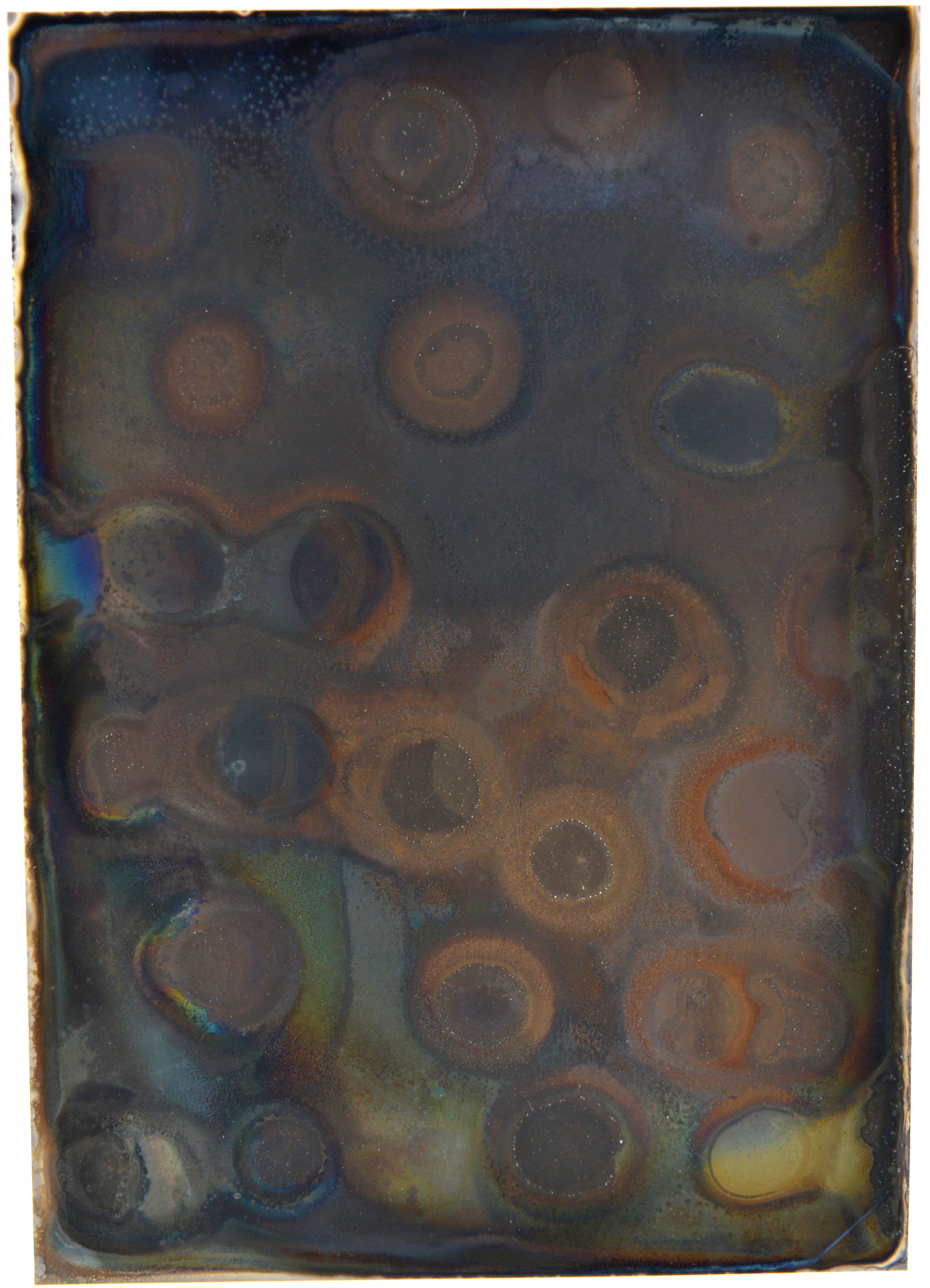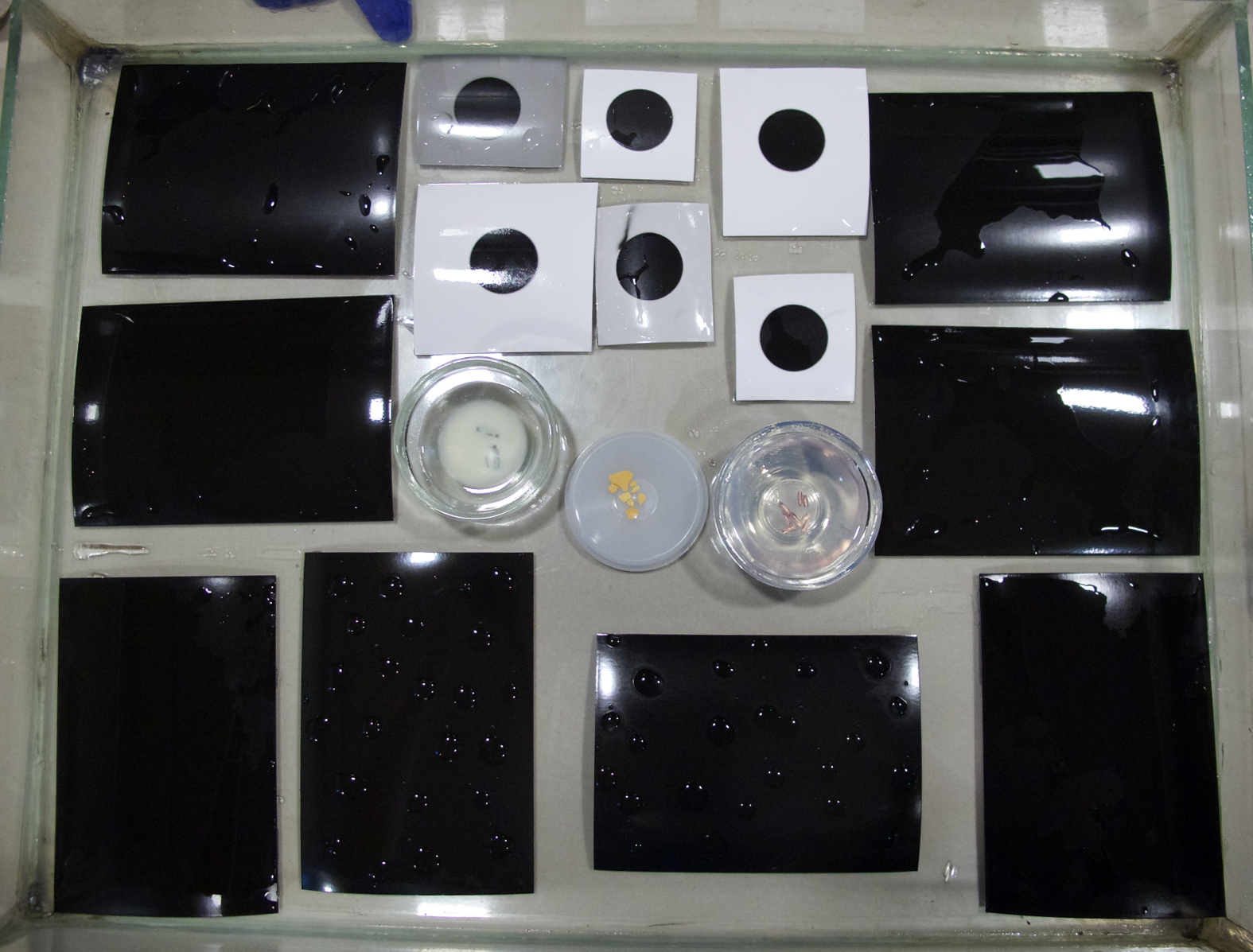 Through experimentation I have deliberately tried to provoke silver to the surface by polluting black-and-white photographic paper. These have been placed in customised containers where they have been exposed to fumes from certain selected chemicals. Furthermore, the paper has been kept in very moist and warm environments. So far the project consists of a lot of experiments. Some showing more silver than others.
